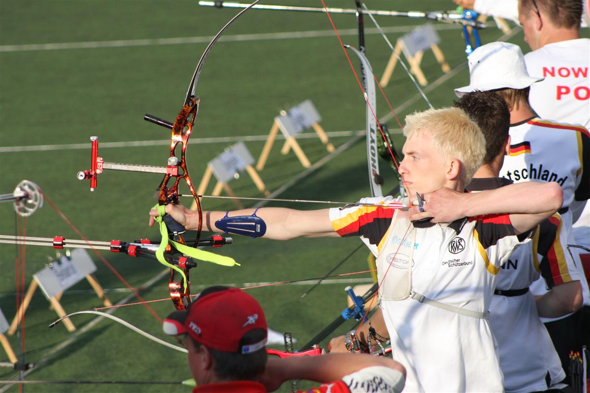 Das deutsche Junioren-Team hat sich bei der Qualifikation am Mittwoch, 14. Juli 2010 gut platziert und gute Ergebnisse erzielt. Nach Abschluss der 72 Wertungspfeile lag Clemens Brosi mit 626 Ringen auf dem 21. Platz, Camilo Mayr mit 623 Ringen auf Rang 28. Besser war hier nur Simon Nesemann auf Platz 18, der mit seinen 629 Ringen das deutsche Team-Ergebnis komplettierte. Alle drei haben nun in der Einzel- und Mannschaftswertung hervorragende Aussichten, weiterzukommen. Das 1/32-Finale findet am Freitag, 16. Juli 2010 bereits um 7.45 Uhr statt, die Egebnisse könnt Ihr hier live mitverfolgen bzw. nachlesen.